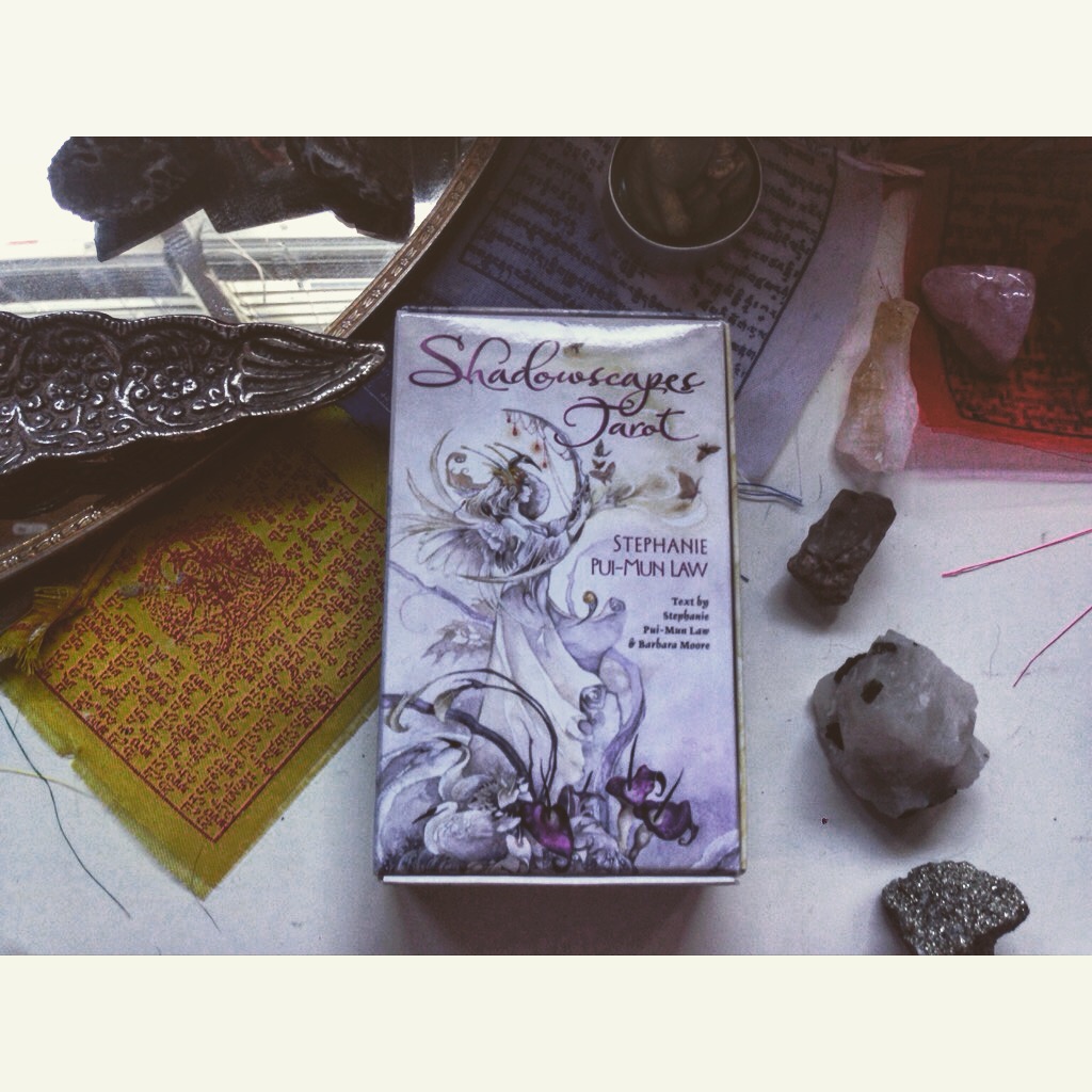 Yesterday, the mailman brought me the tarot deck I researched, fell in love with, and just had to have. I have been waiting for it, for a while and now it is mine, in my hands, ready to become a part of my daily life: SHADOWSCAPES tarot deck by Stephanie Pui-Man Law and Barbara Moore.
