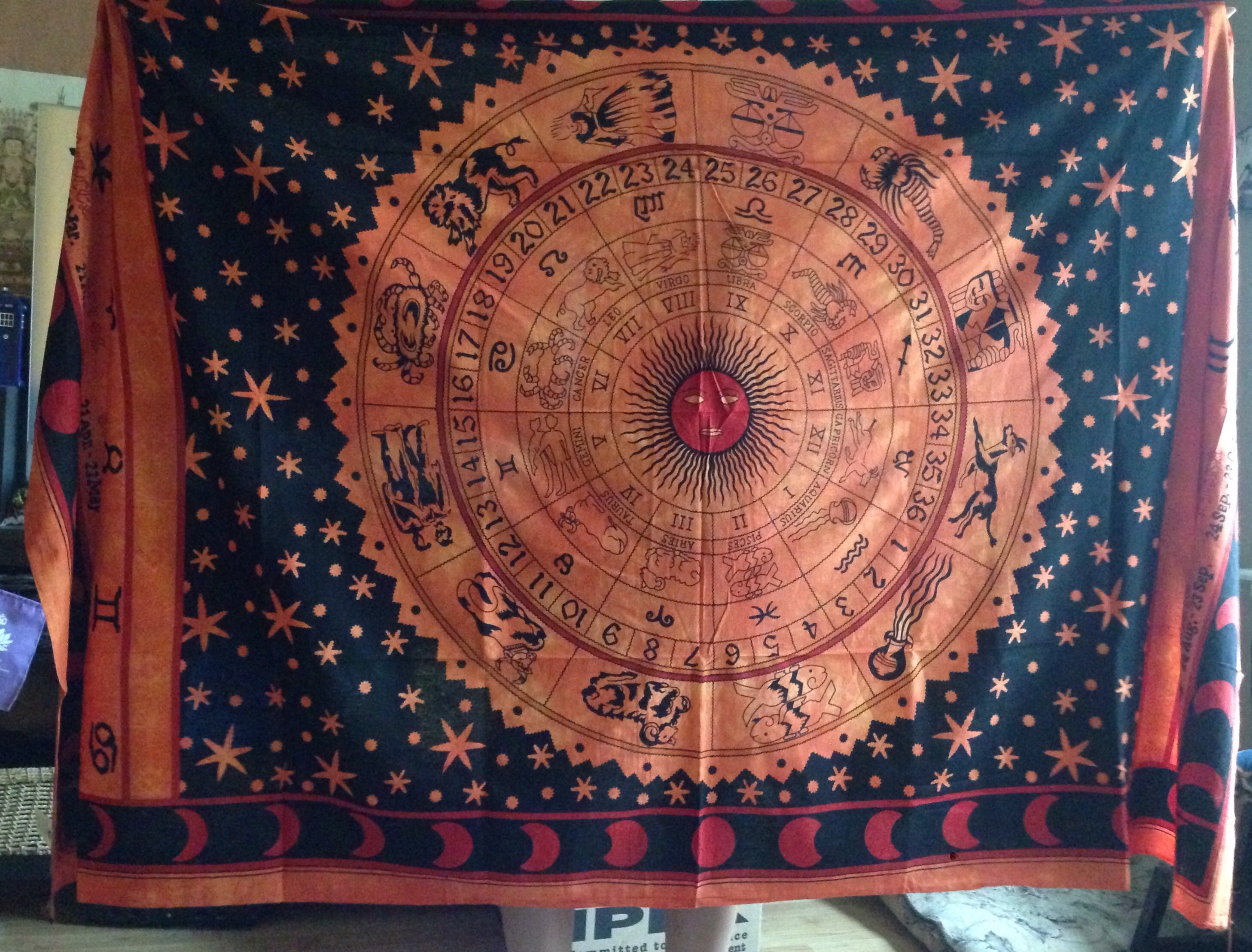This astrology tapestry fits a queen size bed or can be hung beautifully on the wall… I haven’t decided what I’m going to do with it yet, but I absolutely adore it!