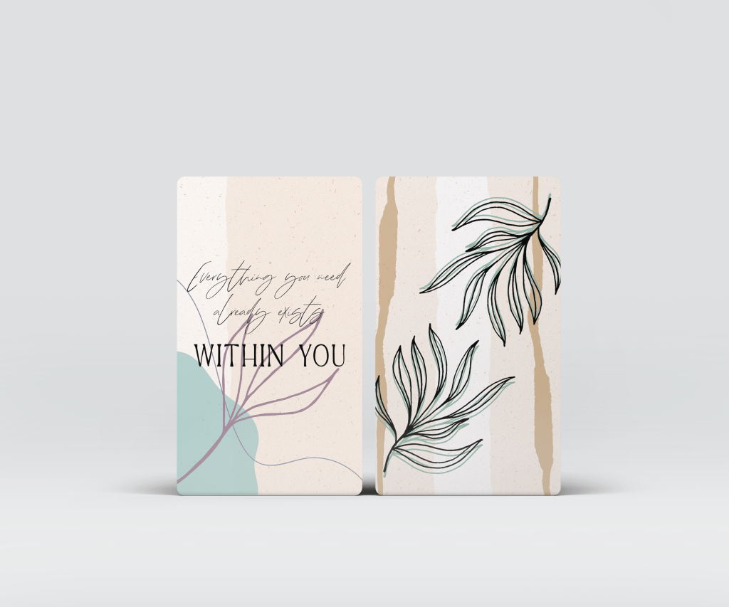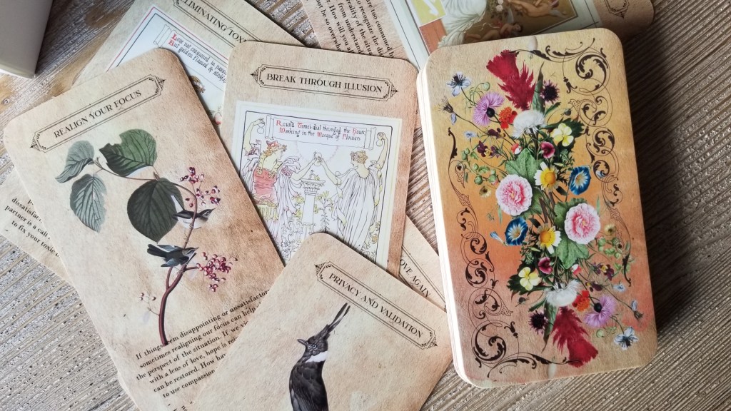 This is a group of blocks in This 30 card, extra-large Tarot sized deck (89mmx127mm) uses simple textured papers with botanical painted images and important messages that provide hope, strength, positive affirmations, and spiritual words of wisdom from your Higher Self. Though the images and design are neutral and simplistic, the messages are impactful and can set your intention or goal for the day. Fonts used are so beautiful and are always in black to stand out against the softened background. There is no guidebook provided with this deck, as the intent is that you begin your day asking your guides and Higher Self for where your focus should be, you pull a card, and set that card aside in your altar to provide you focus and clarity for your spiritual purpose. These cards are also a great way to round off the final focus for your reading or your client’s reading.
